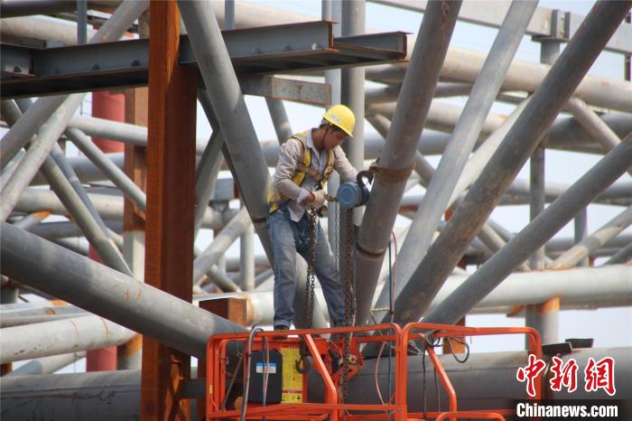 郑州南站建设者正在进行站房屋架钢结构拼装作业。关超 摄