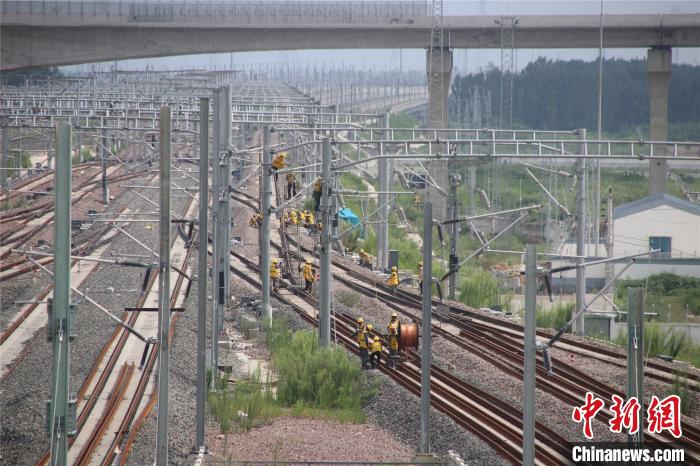 郑州南站建设者正在进行四电安装作业。关超 摄
