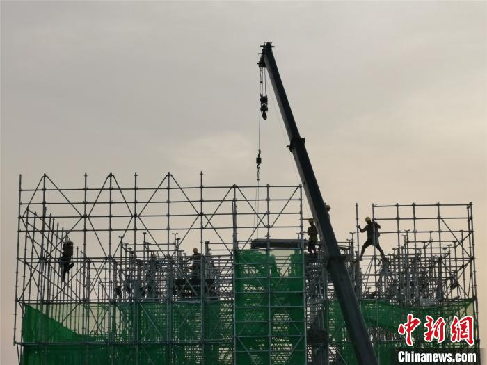 郑州南站建设者正在进行脚手架搭设作业。关超 摄