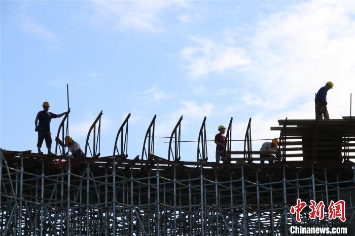 郑州南站建设者正在进行匝道桥模板安装作业。关超 摄