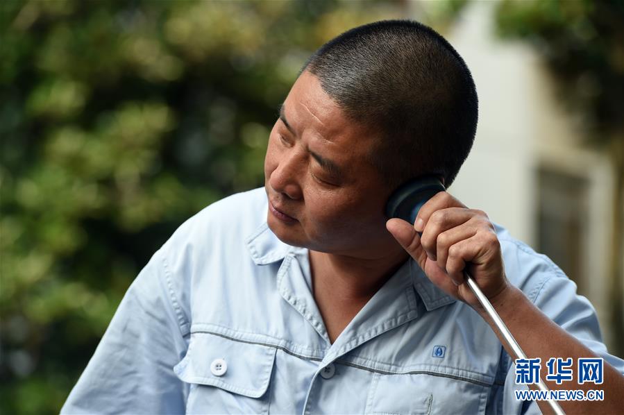 8月25日,在合肥市蜀山区,听漏队队员吕军用听漏棒对供水管道进行巡检。 安徽省合肥供水集团听漏队现有队员23人,主要负责全市8000多公里供水管网检漏工作。他们通过监听地下传来的声音,判断地下供水管道是否漏水。日前正值高温季节的用水高峰期,他们每天顶着烈日为供水管网“把脉”,保障全市供水管网安全运行。 新华社记者 周牧 摄