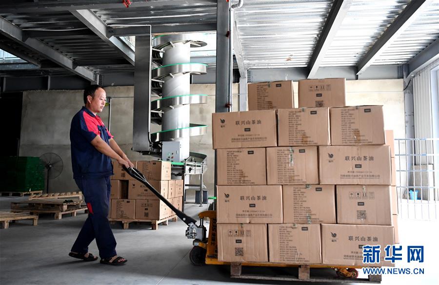 8月25日,工作人员在河南省光山县一家油茶加工企业装卸车间内作业。 新华社记者 郝源 摄