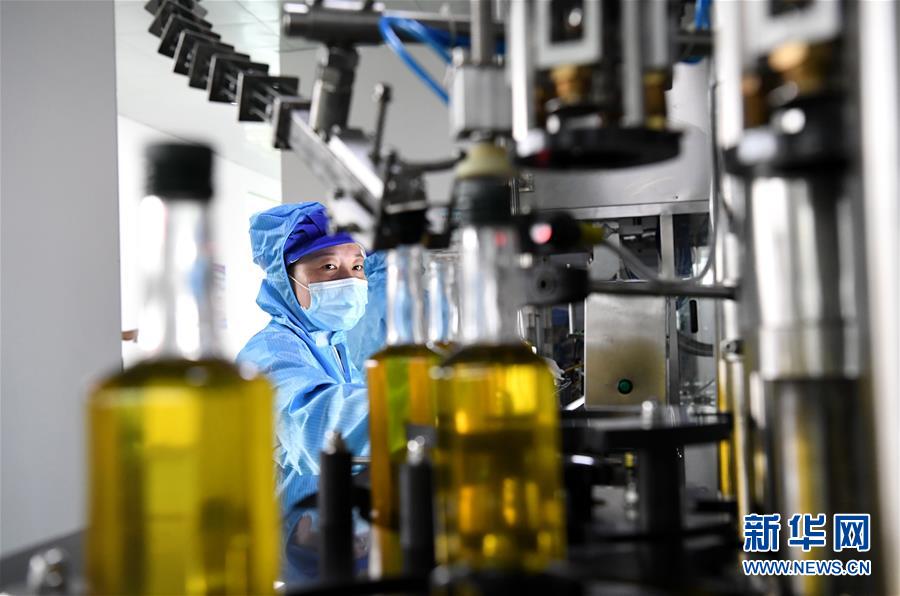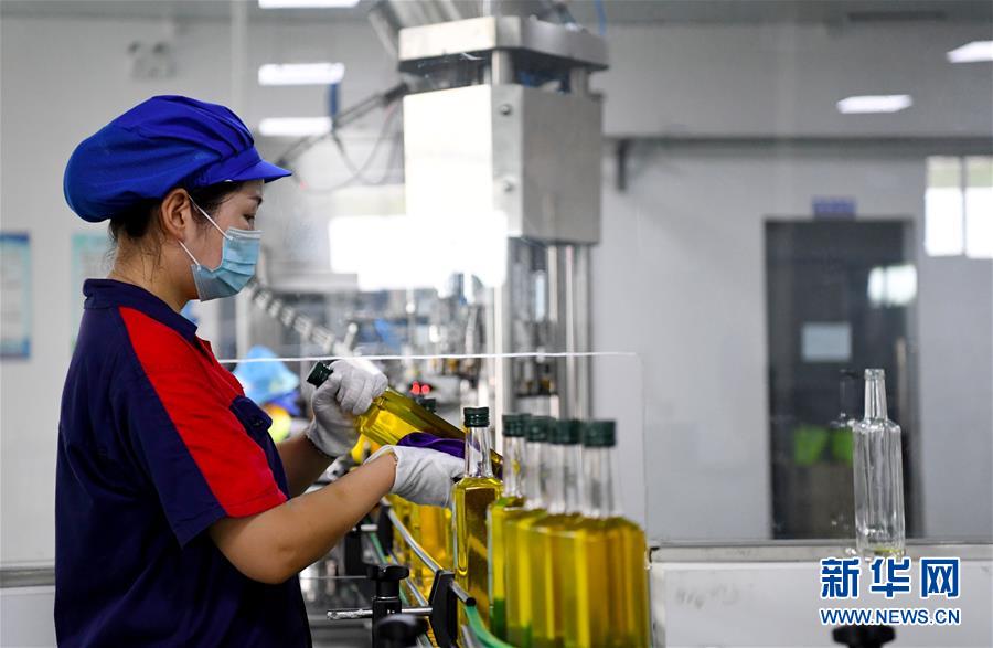 8月25日,工作人员在河南省光山县一家油茶加工企业灌装车间作业。 新华社记者 郝源 摄