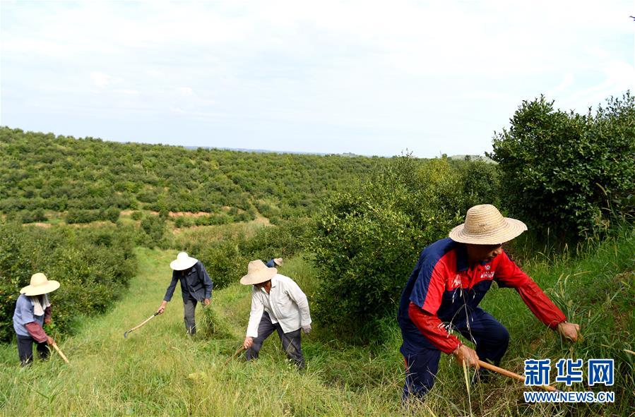 8月25日,村民在河南省光山县槐店乡一油茶园内除草。 近年来,河南省光山县把发展油茶作为实施精准扶贫的重要抓手,坚持走绿色发展道路,以“企业+基地+农户”的发展模式,把油茶产业作为富民的特色产业,推广新技术,发展深加工。截至目前,全县油茶种植总面积达22.7万亩,带动近30万农民增收致富。 新华社记者 郝源 摄