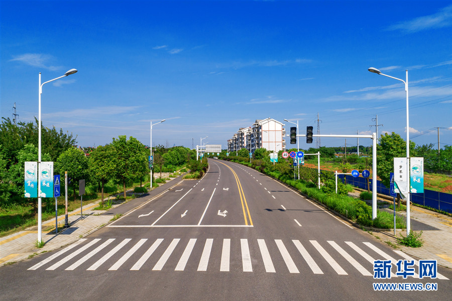 武汉市江夏区法泗街大路村通过迁村腾地、土地流转,集中建设农民新居,村民居住条件大为改善,成为“湖北省宜居村庄”。干净整洁的道路和鳞次栉比的农村新居,是大路村一道亮丽风景线。(文/张潘 图/柳斌)