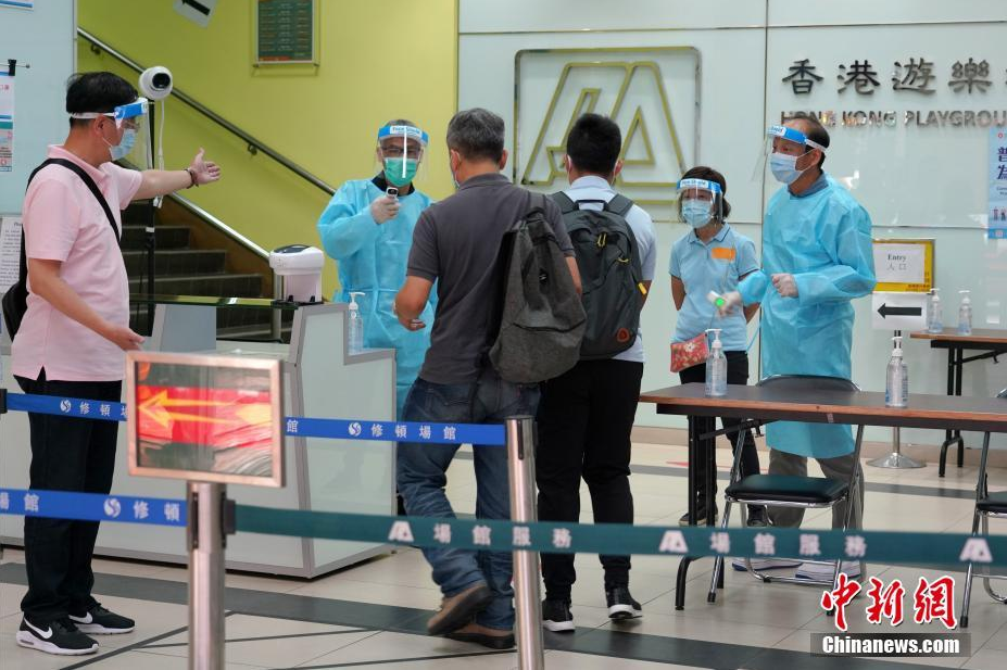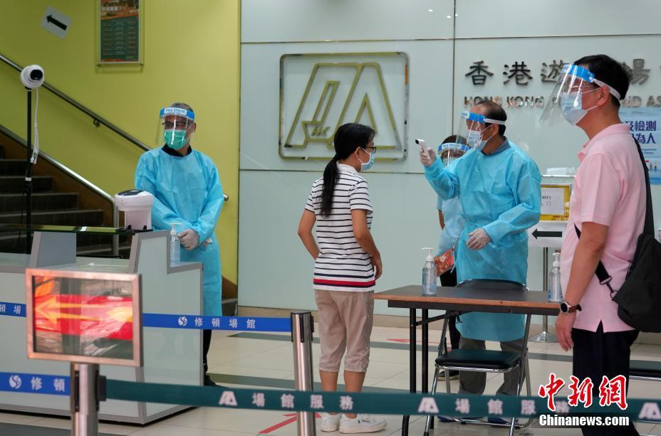 9月1日上午,已预约市民陆续来到位于香港湾仔修顿场馆的社区检测中心,准备接受检测,入场前须量体温。香港普及社区检测计划当天上午正式开始实施,141个社区检测中心为市民提供一次免费检测服务。中新社记者 张炜 摄