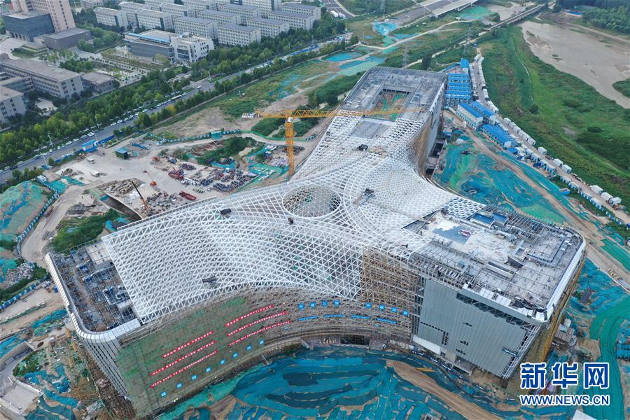 这是位于河南省郑州市郑东新区的建设中的河南省科技馆新馆(8月31日摄,无人机照片)。 新华社记者 冯大鹏 摄