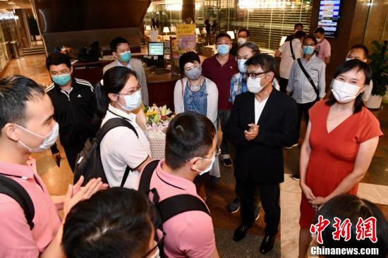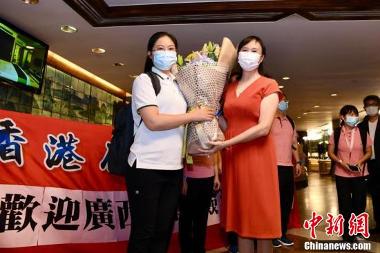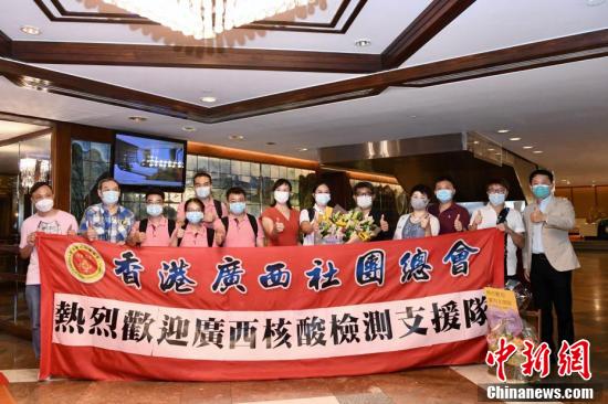 9月2日晚上,香港广西社团总会欢迎内地核酸检测支援队(广西组)成员。中新社记者 李志华 摄