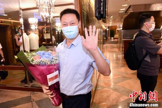 9月2日晚上,内地核酸检测支援队(福建组)成员挥手致意。中新社记者 李志华 摄