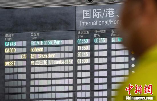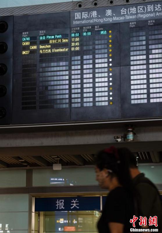 9月3日上午,北京首都国际机场T3航站楼国际到达电子屏显示,由中国国际航空公司执飞的CA746(柬埔寨金边-北京首都机场)航班已经抵达。这是中国民航局宣布逐步将经第一入境点分流的北京国际客运航班恢复直航后,首都国际机场迎来的第一个国际航班。根据相关航班始发地远端核酸检测工作情况,自9月3日起,中国先行恢复泰国、柬埔寨、巴基斯坦、希腊、丹麦、奥地利、瑞典、加拿大等8个输入病例较少国家至北京的9个航班。中新社记者 侯宇 摄