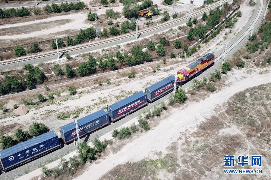 6月5日,国际货运班列从兰州国际陆港发车(无人机照片)。 新华社记者 范培珅 摄