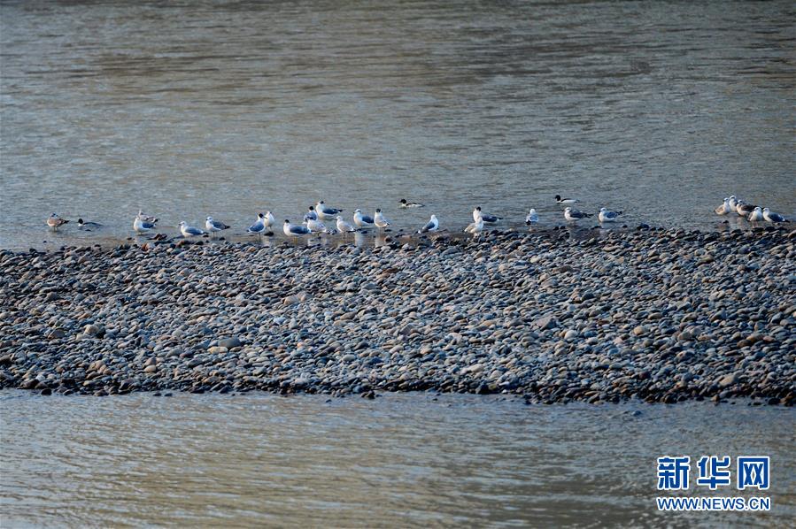 黄河兰州段上的水鸟(2019年12月4日摄)。 新华社记者 马希平 摄