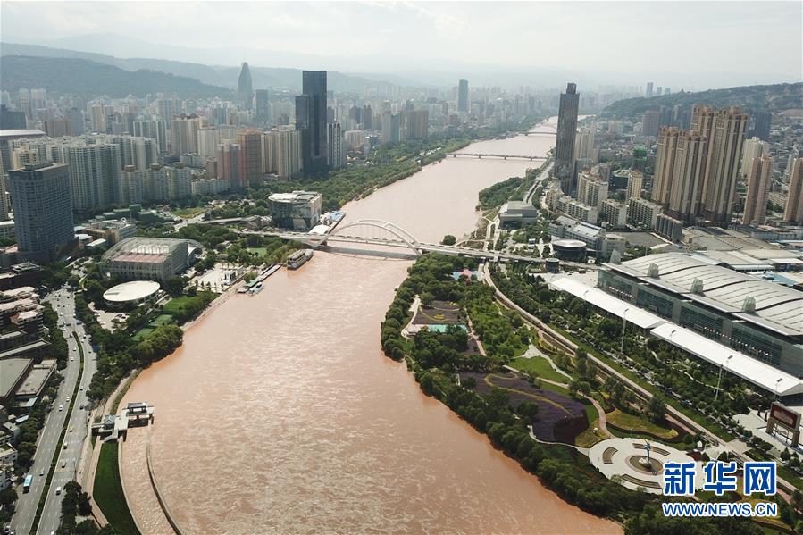这是8月12日拍摄的黄河兰州段景象(无人机照片)。 新华社记者 范培珅 摄