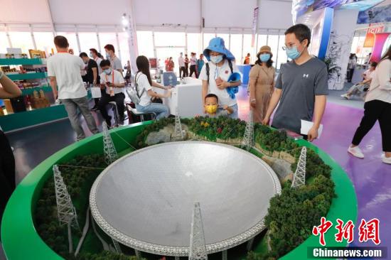 9月5日,北京,在2020中国国际服务贸易交易会上,观众参观“天眼”模型。中新社记者 杜洋 摄