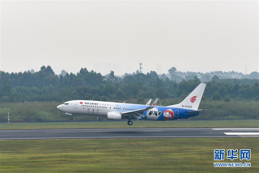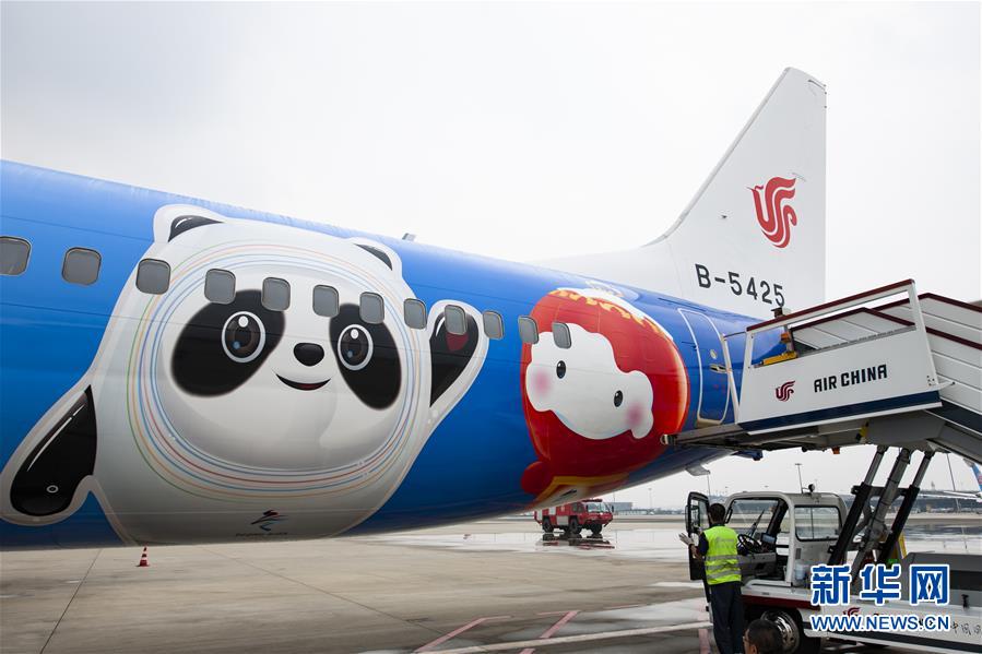 9月5日,“冬奥冰雪号”彩绘飞机在成都双流国际机场降落。 当日,从北京出发的北京2022年冬奥会和冬残奥会首架主题彩绘飞机“冬奥冰雪号”抵达成都完成首航。 新华社记者胥冰洁摄