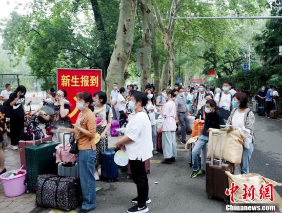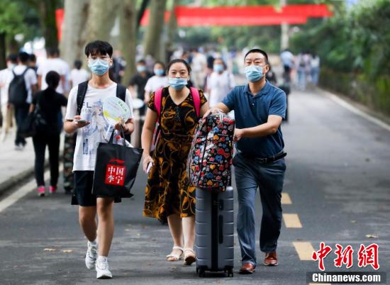 9月11日,武汉大学迎来2020级本科新生。来自全国各地的2020级本科新生到校报到,开启他们的大学生活。武汉大学今年招收本科新生7242名。图为新生在家人的陪同下报到。