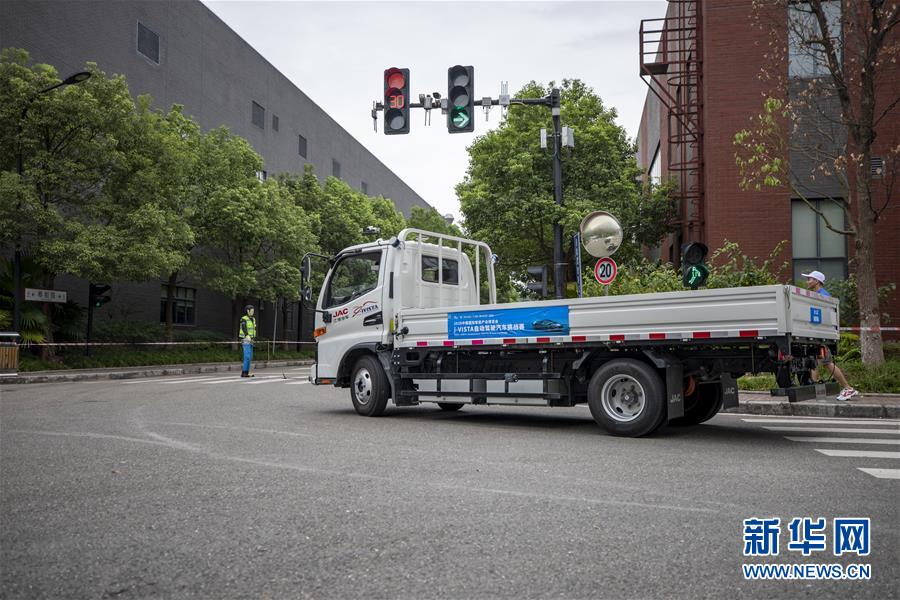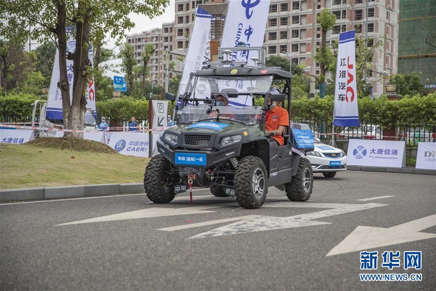 9月12日,一辆自动驾驶汽车从起点处出发。新华社记者 黄伟 摄