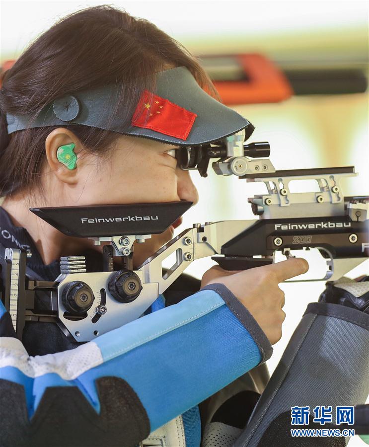 9月22日,国家集训队队员张彬彬在10米气步枪混合团体资格赛中。 当日,2020年全国射击冠军赛步枪项目比赛在湖北省宜昌市奥体中心射击馆正式开赛。 新华社记者 丁汀 摄
