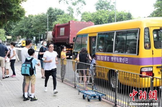 9月23日早上,香港学生乘坐校巴返回学校。香港疫情缓和,全香港学校分两个阶段恢复面授课堂,即日起中小学的一、五、六年级以及幼稚园高班开始恢复面授课堂,其余级别的学生则于本月29日起回校上课。