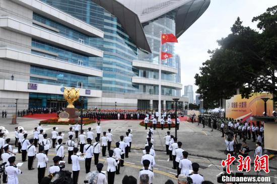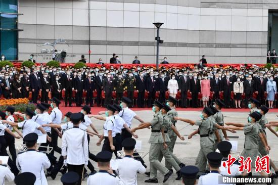 10月1日,香港特区政府在金紫荆广场举行国庆71周年升旗仪式。中新社记者 李志华 摄