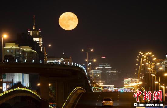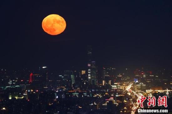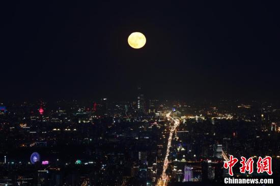 10月2日,中秋国庆假期第二天,北京天气晴好,一轮明月在夜晚逐渐升起。当日是农历八月十六,中国民间有“十五月亮十六圆”的说法。中新社记者 盛佳鹏 摄