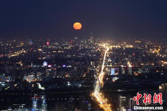 10月2日,中秋国庆假期第二天,北京天气晴好,一轮明月在夜晚逐渐升起。当日是农历八月十六,中国民间有“十五月亮十六圆”的说法。中新社记者 杜洋 摄