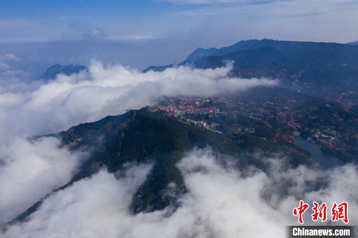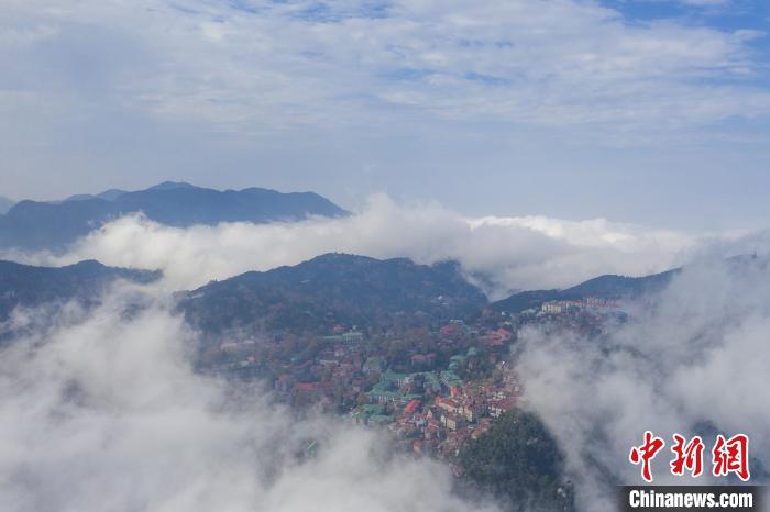 10月29日,江西庐山风景名胜区出现壮观的云海美景。连日来,受冷空气影响,庐山风景区时雨时晴,在洁白云雾的装扮下,红绿房屋和色彩斑斓的树木交相辉映,呈现出多变的秋季美景。