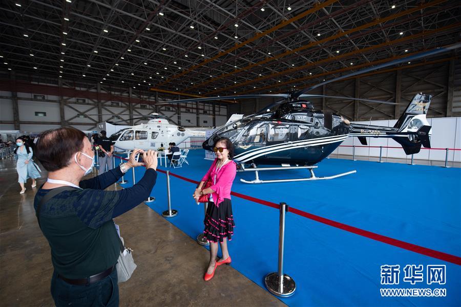 10月30日,与会者在第九届澳门公务航空展上拍照。 近日,第九届澳门公务航空展、第十届中国(澳门)国际游艇进出口博览会和第十届中国(澳门)国际汽车博览会在澳门举行。 新华社记者 张金加 摄