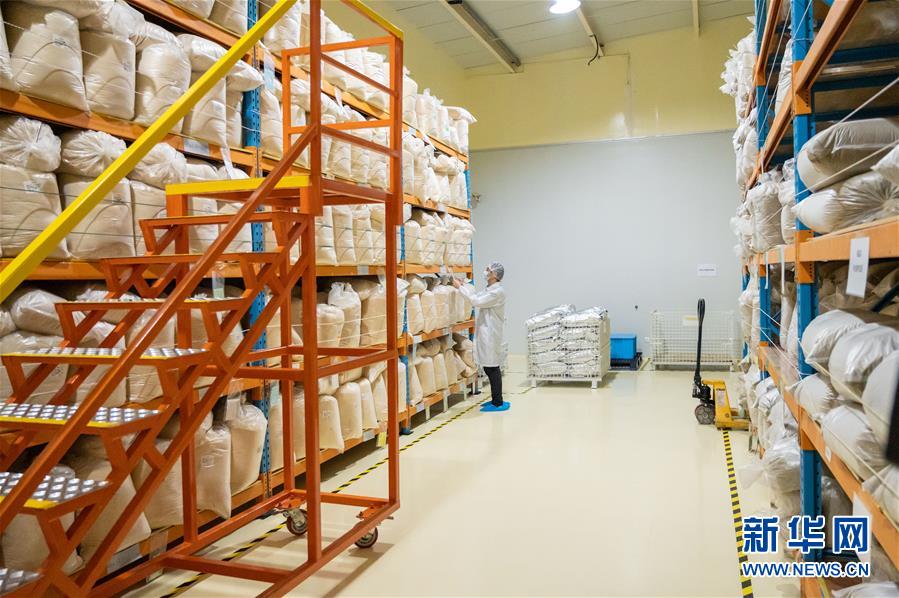 10月29日,在马来西亚霹雳州小镇务边的务边沉香山茶园,工人包装沉香茶。 新华社记者 朱炜 摄