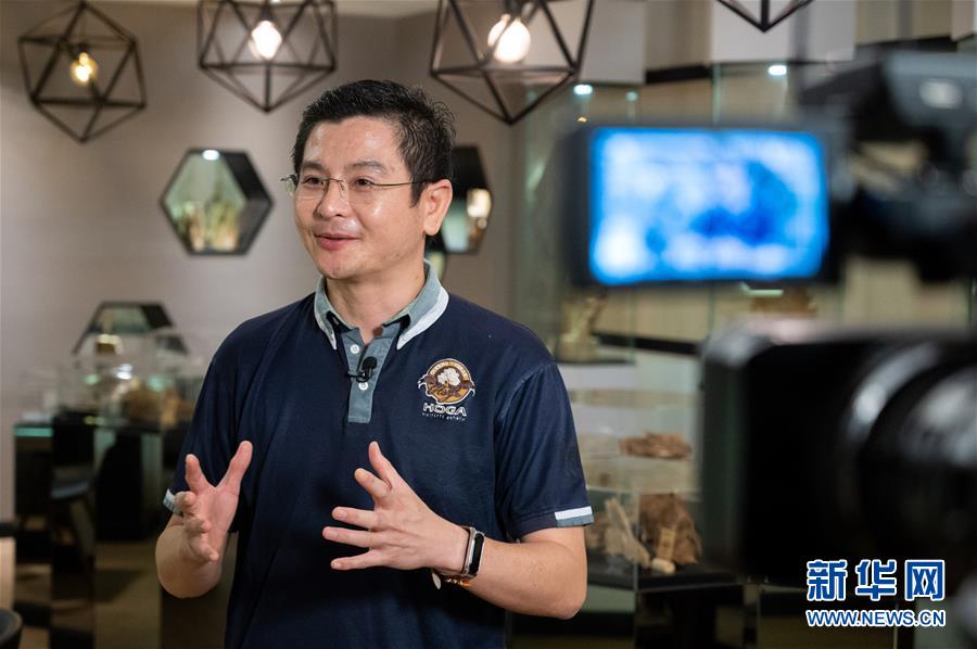 10月29日,在马来西亚霹雳州小镇务边的务边沉香山茶园,何楚为接受记者采访。 新华社记者 朱炜 摄