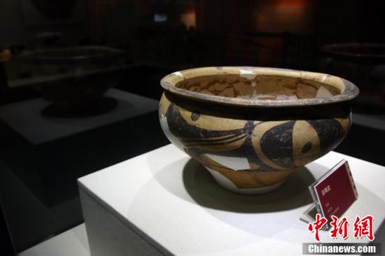 11月7日,仰韶文化博物馆展示的典型出土文物彩陶盆。仰韶文化博物馆位于河南省三门峡市渑池县仰韶村遗址保护区,是中国国内首家仰韶文化专题博物馆。