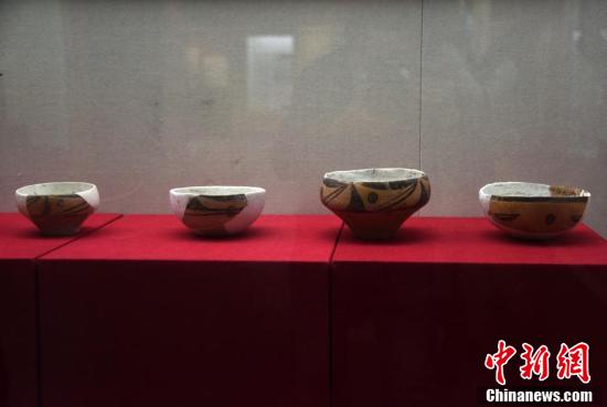 11月7日,仰韶文化博物馆展示的典型出土文物彩陶器。仰韶文化博物馆位于河南省三门峡市渑池县仰韶村遗址保护区,是中国国内首家仰韶文化专题博物馆。