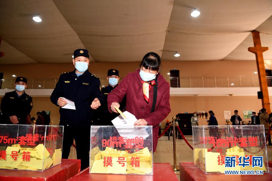 11月15日,肥西县花岗镇回迁农民在抽签选房。当日,安徽省合肥市肥西县花岗镇棚户区改造项目的1300多套回迁安置房进行公开选号分配,村民将在配套齐全的现代化小区里开启新生活。新华社记者 刘军喜 摄