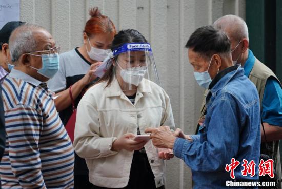 11月15日,香港特区政府设立的四间长期社区检测中心开始投入服务。运营首日,位于梁显利油麻地社区中心的社区检测中心吸引众多市民前来检测,除了已预约的市民外,也有众多未预约市民亦希望参加检测。四间社区检测中心主要为市民提供自费检测服务,可作为出行或工作证明,有关服务收费上限为240港元。图为工作人员向长者介绍手机预约的方法。