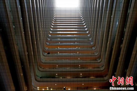 12月25日,在四川成都的一栋写字楼内,现代简约的建筑风格,几何线条在光影中形成的立体层次感,好似“盗梦空间”中的场景一般。该地因此也吸引着众多摄影爱好者前来“打卡”。