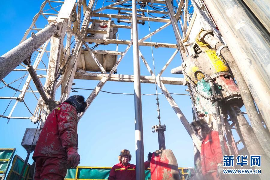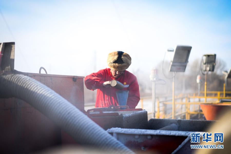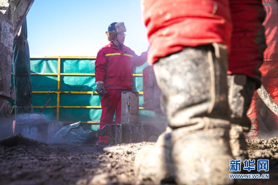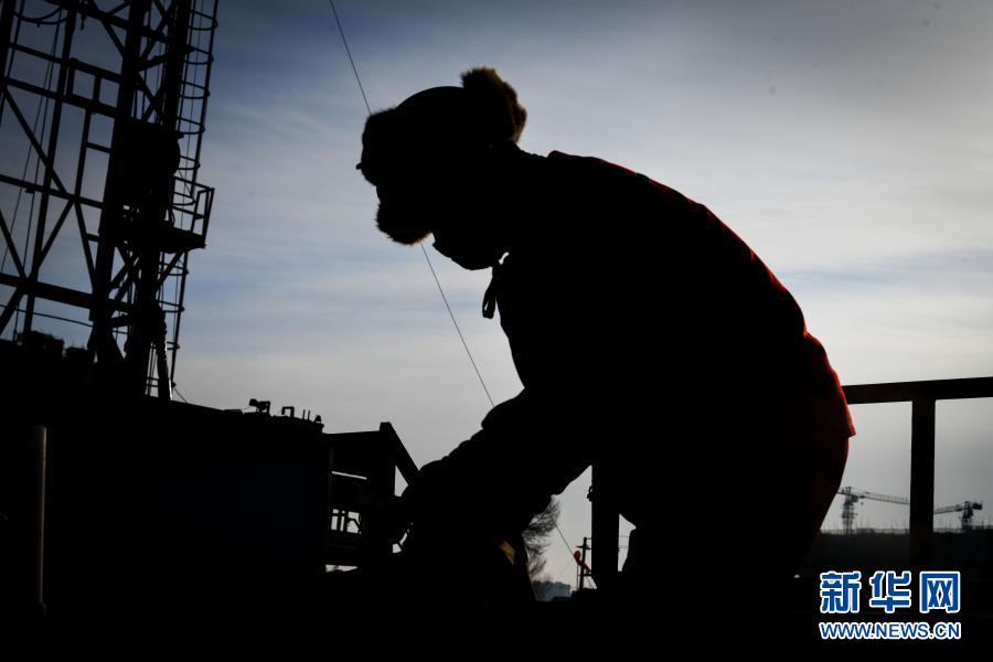 大庆油田1205钻井队钻井工人在野外钻井平台作业(2020年12月28日摄)。新华社记者 王松 摄