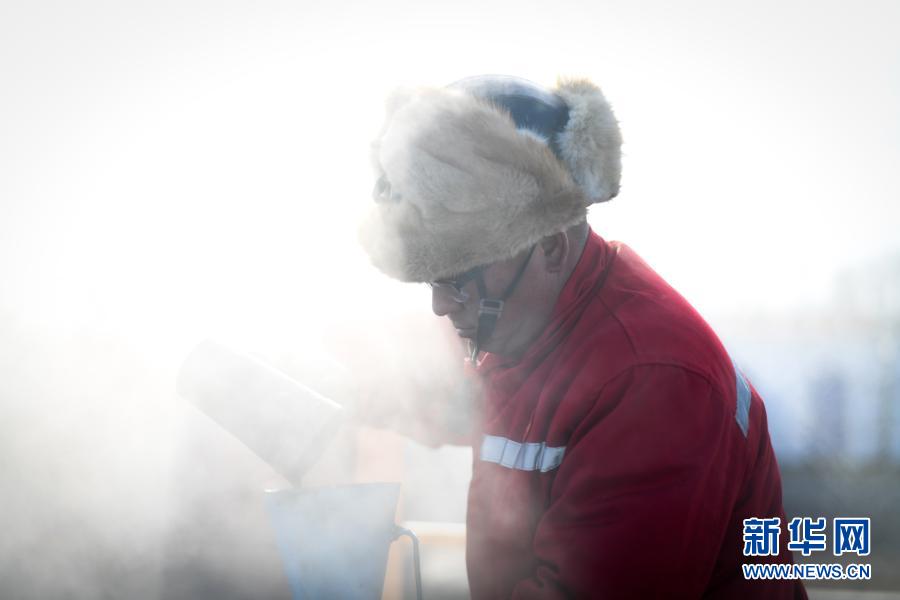 大庆油田1205钻井队钻井工人在野外钻井平台作业(2021年1月7日摄)。新华社记者 王松 摄