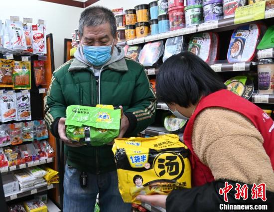 图为市民在一便利店选购食品。 中新社记者 翟羽佳 摄