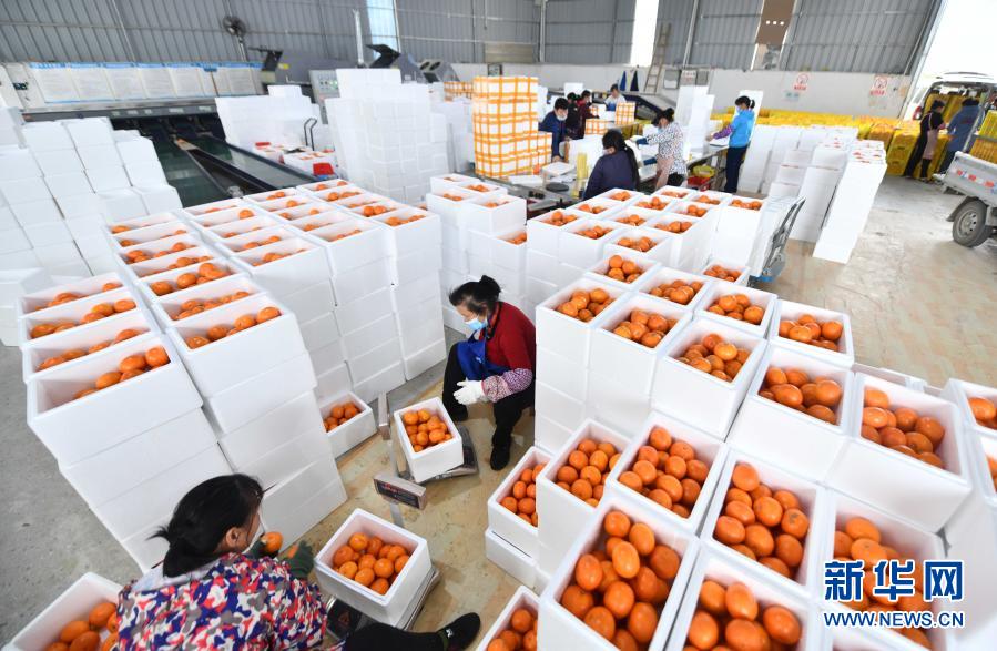 1月29日,在钦州市灵山县灵城街道白水村,村民打包沃柑,准备销售。新华社记者 黄孝邦 摄