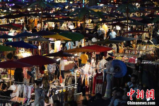 2月25日,云南西双版纳,告庄夜市。景洪市告庄夜市是当地较为热闹的夜市,吸引不少游客前往,富有民族元素的“旅拍”成为夜市的热门项目。