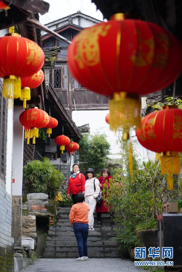 3月19日,游客在石泉县后柳古镇游览。新华社记者 邵瑞 摄