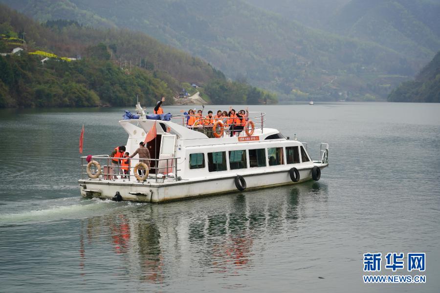 3月19日,游客在石泉县后柳镇乘船游览。新华社记者 邵瑞 摄