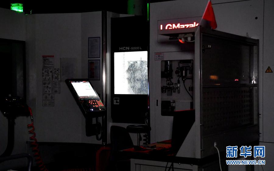 西安航天动力测控技术研究所精密机械加工研究室的车间内,卧式加工中心在夜间无人值守的情况下加工航天产品零部件(3月18日摄)。