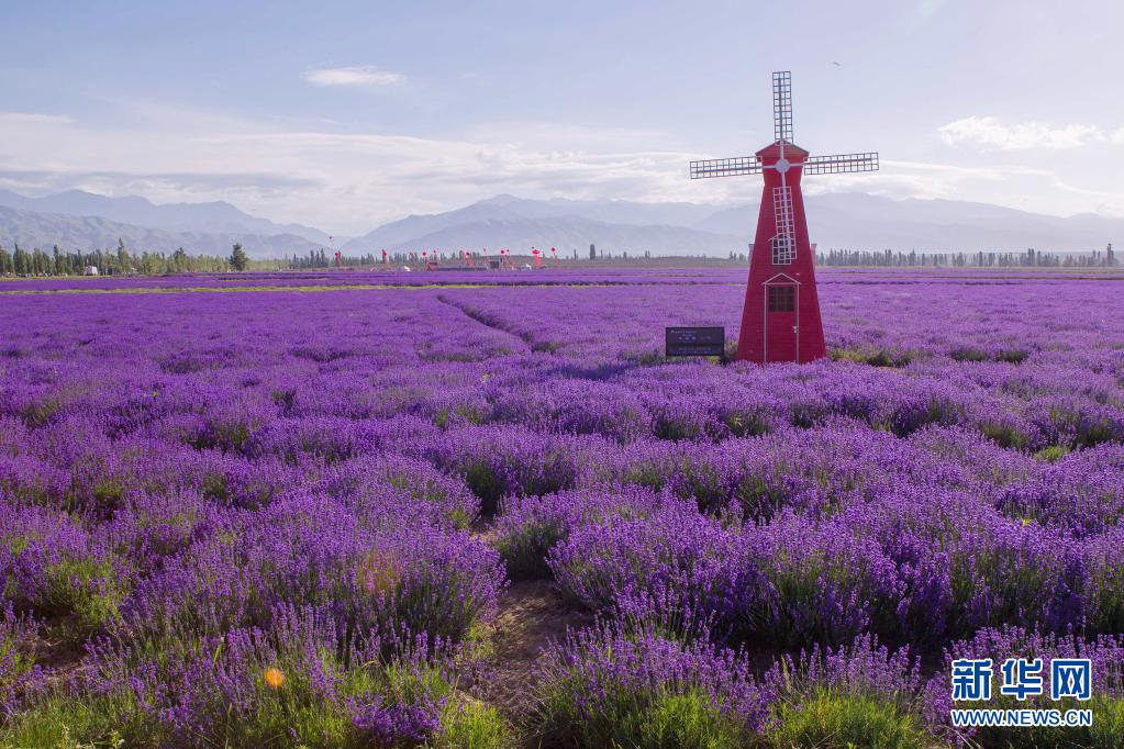 新疆伊犁哈萨克自治州霍城县的薰衣草花田(2017年6月17日摄)。新华社记者 岑云鹏 摄