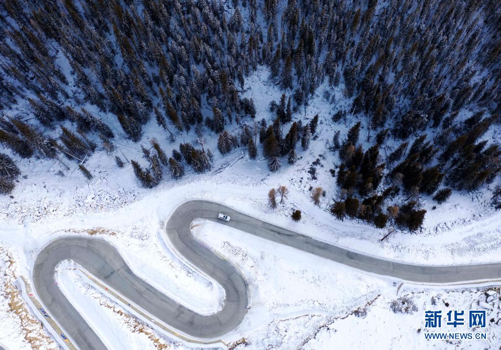 新疆可可托海景区银装素裹,景色迷人(2020年12月29日摄,无人机照片)。新华社记者 沙达提 摄