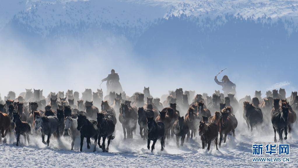 新疆昭苏县天马旅游文化园驰骋的骏马(2020年12月20日摄)。新华社记者 白志强 摄