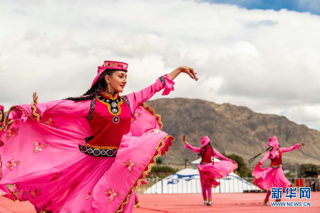 演员在新疆塔什库尔干塔吉克自治县端午节群众性文化体育活动现场表演(2020年6月25日摄)。新华社记者 胡虎虎 摄
