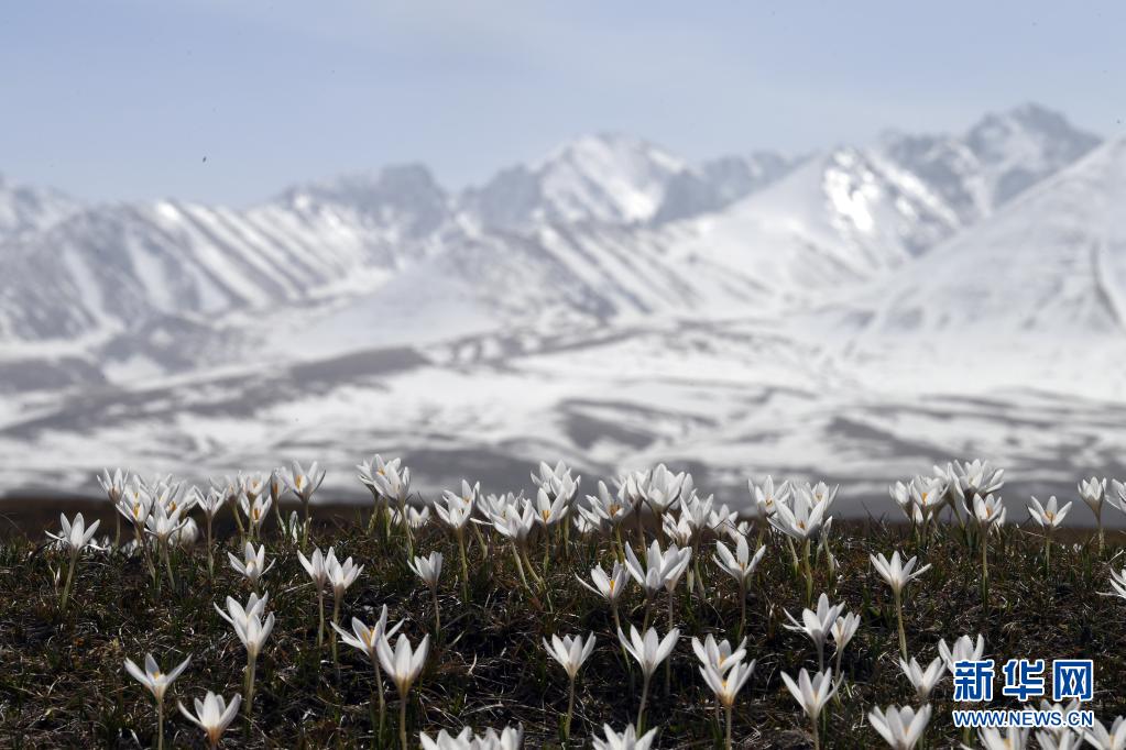 新疆“空中草原”那拉提景区,雪山脚下的野百合随着冰雪逐渐消融破冰而出,在涓涓雪水的滋养下悄然绽放(2019年4月4日摄)。新华社记者 沙达提 摄