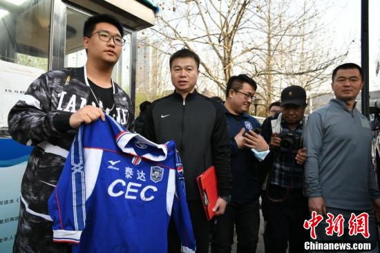 3月31日晚,天津津门虎足球俱乐部发布公告,宣布聘请于根伟为俱乐部总经理兼球队主教练。资料图为3月末,于根伟(左二)带领天津津门虎足球队进行首训后与球迷合影。