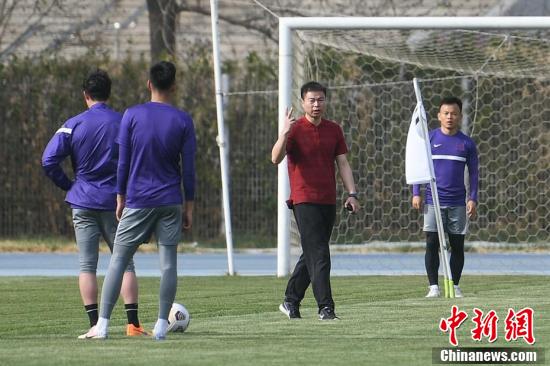 3月31日晚,天津津门虎足球俱乐部发布公告,宣布聘请于根伟为俱乐部总经理兼球队主教练。资料图为3月末,于根伟(右)带领天津津门虎足球队进行首训。